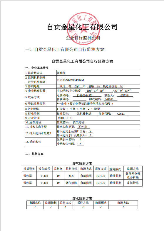自貢金星化工有限公司 公司辦:蘭女士 0813-7293016 營銷部:鄧女士 0813-7293127 地址:自貢市富順縣富世鎮(zhèn)晨光工業(yè)園區(qū)