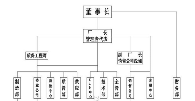 公司總經(jīng)理下面設(shè)置:銷售部、技術(shù)部、生產(chǎn)部、采購部、行政人事部、財務(wù)部 、售后部